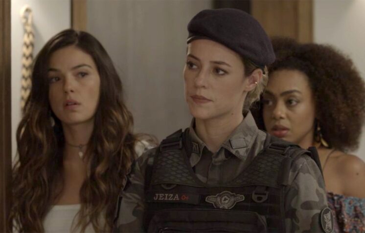 “Você é a namorada do Caio (Rodrigo Lombardi)”, dirá a dondoca ao ver Jeiza em seu apartamento. “Aqui, a major Jeiza! Por favor, entreguem o menino”, falará a loira, segundo informações do jornalista Daniel Castro.