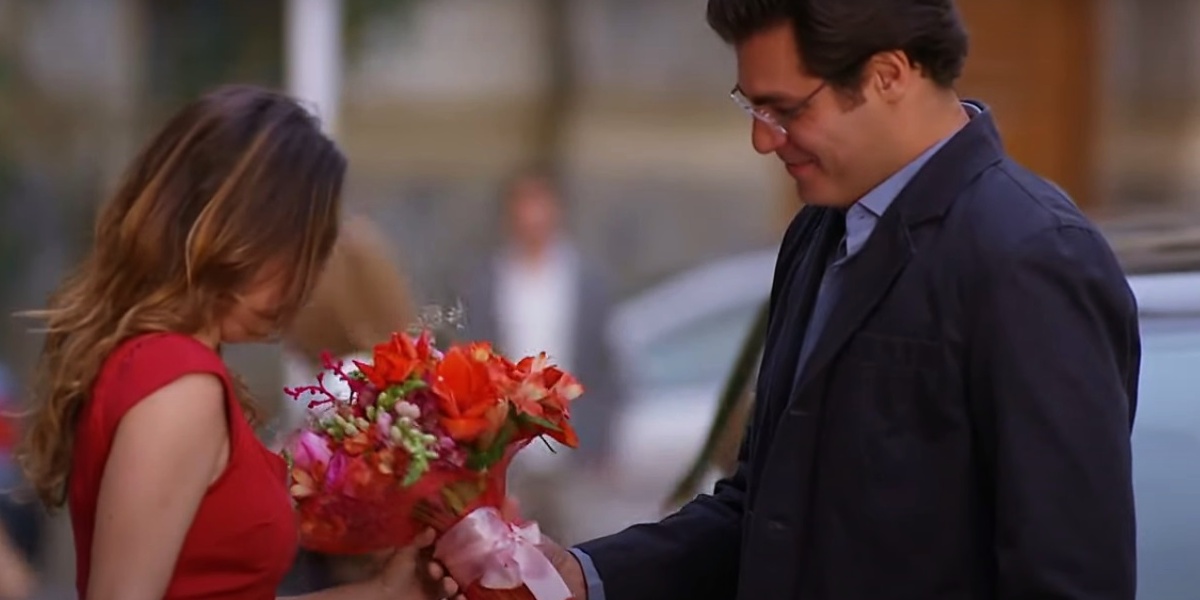 Lúcio entrega flores para Ana em primeiro encontro em A Vida da Gente (Foto: Reprodução/Globo)