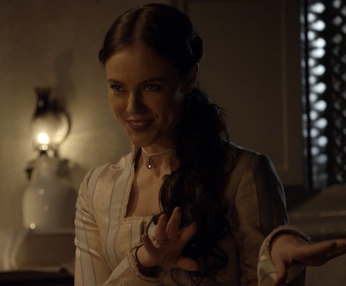 Melissa (Paolla Oliveira) chega de surpresa no quarto de Lívia (Alinne Moraes) para tentar descobrir se aconteceu algo entre a ex-noviça e Felipe (Rafael Cardoso). Se fazendo de sonsa, a filha de Dorotéia (Julia Lemmertz) pergunta como ela conheceu o Conde.