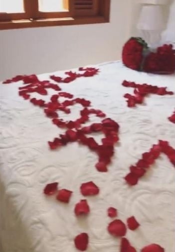 Cama do casal enfeitada (Foto: Reprodução)