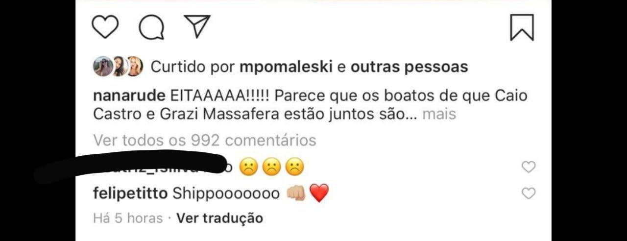E se não bastasse a foto comprometedora, temos alguns Globais alegando que shippam o casal. Foi o Caso do ator Felipe Titto que comentou um ‘shippo’ na publicação. Estaria os dois de fato tendo algo a mais? Cenas dos próximos capítulos.