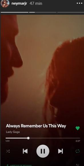 Em seu perfil oficial no Instagram, na função Stories, ele compartilhou um trecho da música Always Remember Us This Way, protagonizada pela cantora Lady Gaga no filme Nasce Uma Estrela.
