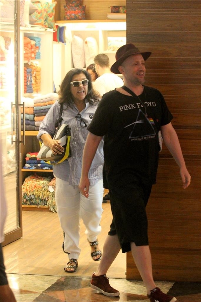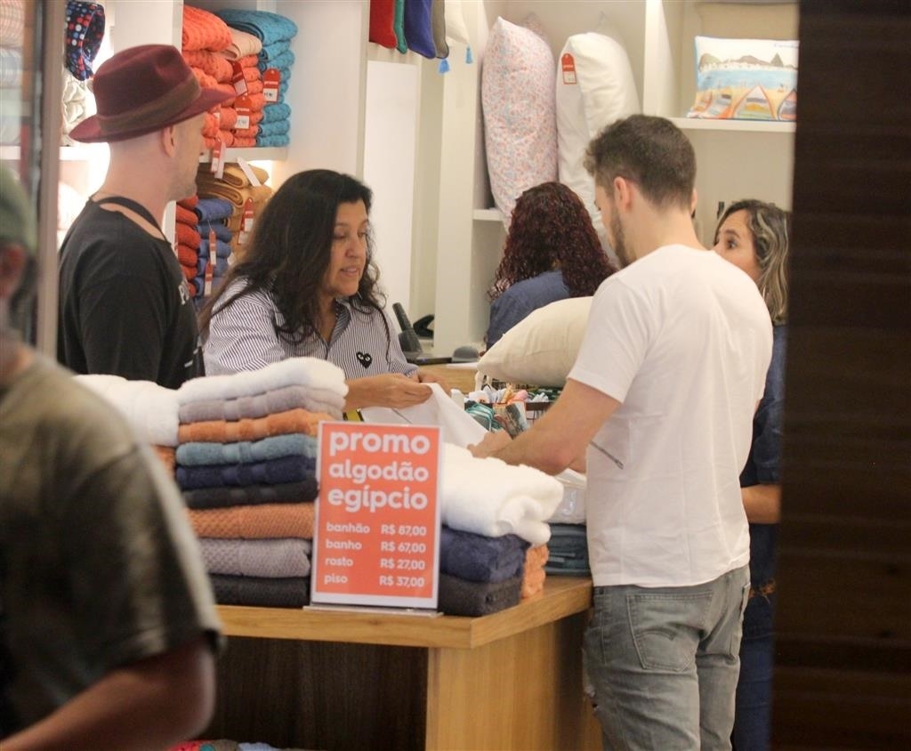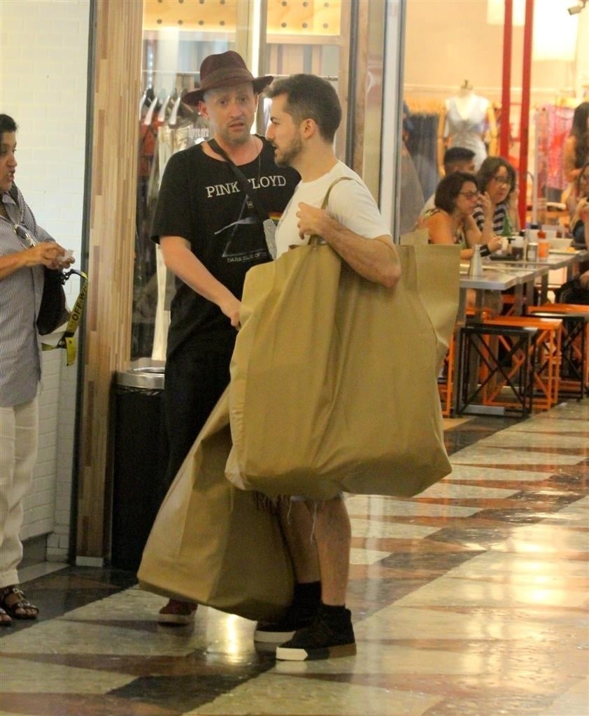De volta ao Brasil, depois de passar uma temporada em Los Angeles, o contratado do Multishow resolveu aproveitar o seu tempo livre para caminhar ao lado de seu companheiro. Na tarde deste último domingo, 13 de outubro, ele e o dermatologista compraram diversas roupas de cama e foram fotografados saindo com duas sacolas gigantescas da loja, entretanto, o que chamou atenção dos admiradores de ambos é que a global estava presente e deu aquela ‘assessoria’ ao casal.