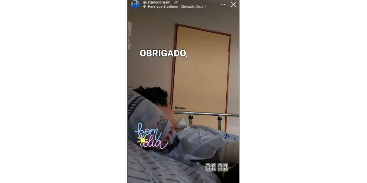 “Boas notícias. Gustavo retirou a sonda, conseguiu fazer xixi, comeu fruta e tomou um pouquinho de água. Graças a Deus está mais confiante. Tenho lido as mensagens para ele e está muito feliz com toda demonstração de carinho. Logo estaremos 100%.”. dizia a mensagem nas redes sociais.