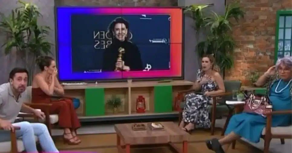 Para quem não viu, Regiane Tápias e seu elenco falavam sobre Fernanda Torres, indicada ao Oscar de Melhor Atriz pelo filme Ainda Estou Aqui. Porém, no meio da conversa, um barulho estrondoso invadiu a exibição, assustando todos que estavam no palco.