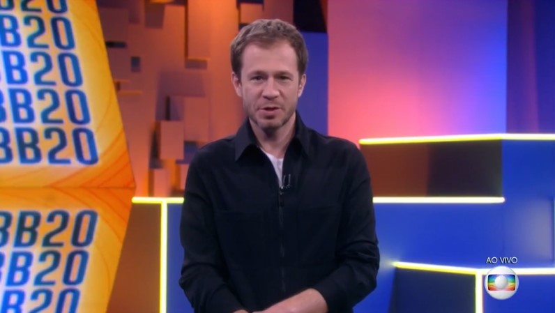 Tiago Leifert na apresentação do BBB20, que teve mais audiência que Faustão (Foto: Reprodução/Globo)