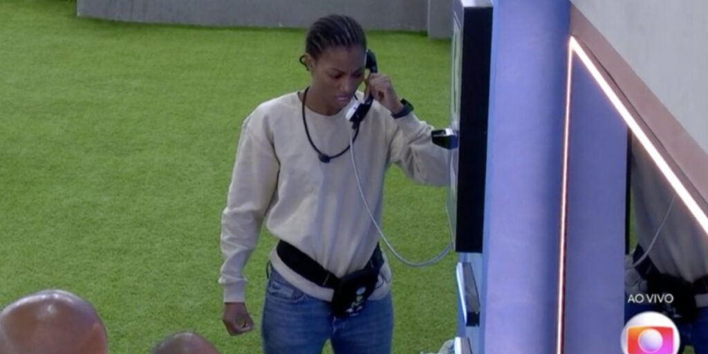Tina, que se encontrava na sala, correu e chegou primeiro ao telefone. Assim, uma voz misteriosa deu um poder absoluto a sister. “Indique duas pessoas ao paredão”, disse.