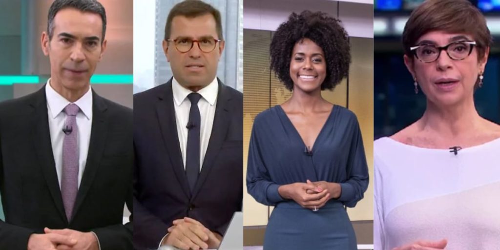 Os Jornalistas Rodrigo Bocardi, César Tralli, Maju Coutinho e Renata Lo Prete são alguns dos principais nomes da Globo, comandando os jornais mais importantes da emissora.