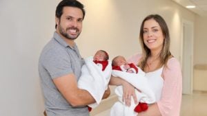 Fabiana Justus e Bruno D’Ancona deixam a maternidade com as gêmeas Sienna e Chiara (Foto: Manuela Scarpa)