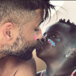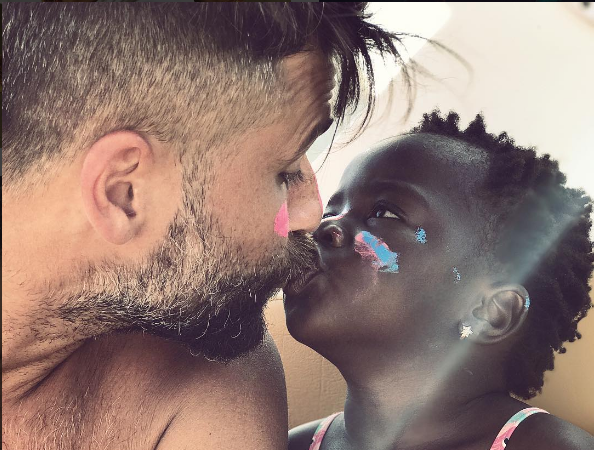 E em uma rede social o pai de Chissomo, (apelidada de Titi) e marido da ex-repórter do “Vídeo Show” Giovana Ewbank posou dando um selinho na filha pequena adotada recentemente da África.