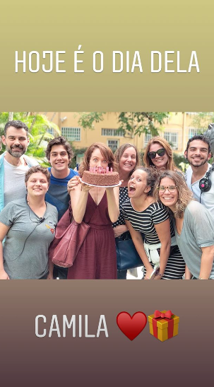 Nos bastidores da TV Globo, na tarde da última quinta-feira, 12/04, a veterana foi surpreendida com um bolo e a surpresa dos jovens atores da trama. “Hoje é dia dela, Camila”, disse um dos atores na legenda da publicação no Instagram.