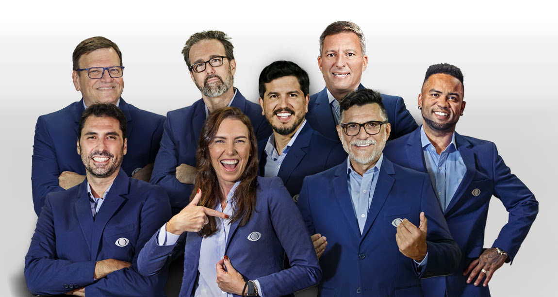 Sergio Mauricio, Glenda Kozlowski, Getúlio Vargas, Ricardo Rocha, Roby Porto, Washington, Carlos Alberto e Athirson vão levar para você todas as emoções do Campeonato Carioca. Crédito: Divulgação/Band
