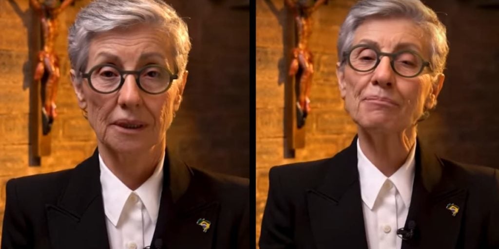 Cássia Kis surge em Aparecida do Norte pedindo contra a “ameaça comunista” (Reprodução: Youtube)