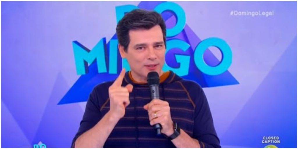 Celso Portiolli apareceu interagindo com o público por meio de uma brincadeira. Acostumado a sempre propor brincadeiras ao público, dessa vez o apresentador fez uma ironia com os políticos que estão fazendo campanha.