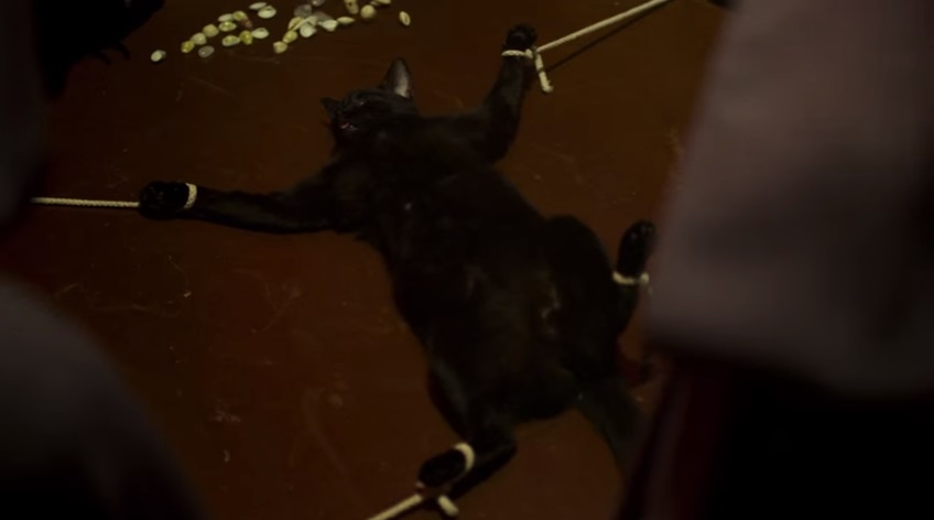Gato preto é torturado em cena (Foto: Reprodução)