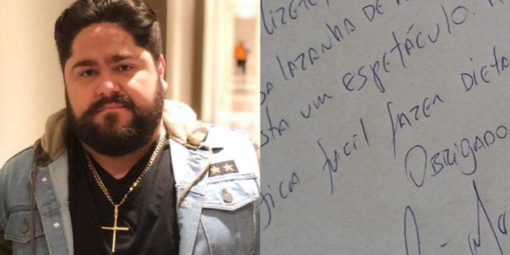 O músico também mostrou um bilhete que deixou antes da morte para a empregada. “Elizete, essa lasanha de abobrinha está um espetáculo! Assim fica fácil fazer dieta! Obrigado, Cesar Menotti”, diz a mensagem.