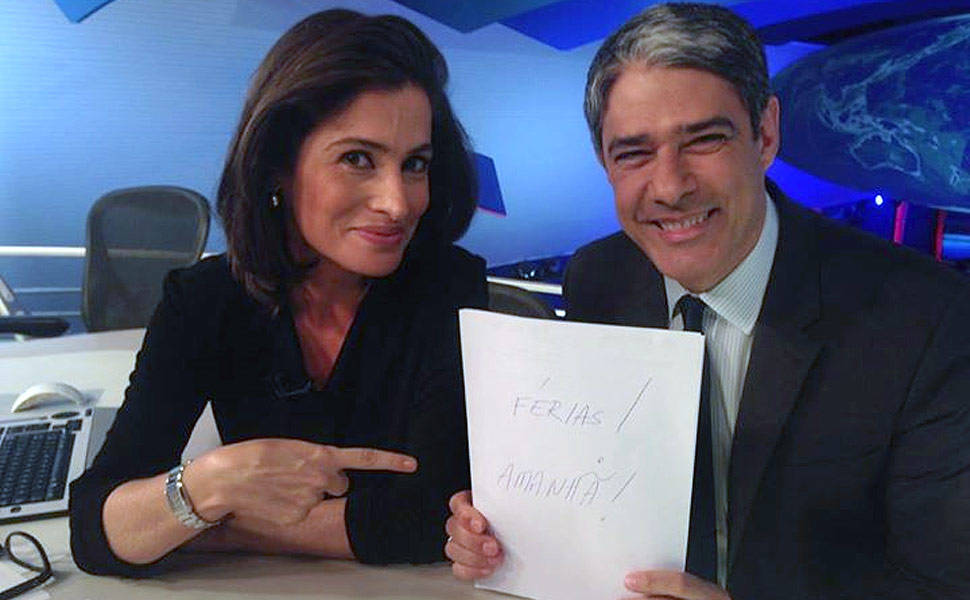 Ainda na quarta-feira, pouco antes da edição do noticiário, os âncoras William Bonner e Renata Vasconcellos postaram uma foto onde aparecem fingindo enforcar uma jovem jornalista, com a seguinte legenda: “Estagiário sofre…”.