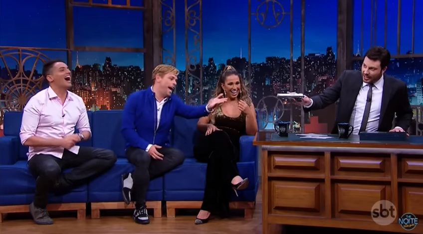 O apresentador Danilo Gentili recebeu três personalidades no programa “The Noite”, que foi exibido ontem, quinta-feira, 28. Na oportunidade estiveram presentes: o jornalista Leo Dias, a cantora Valesca e Bruno Chateaubriand.