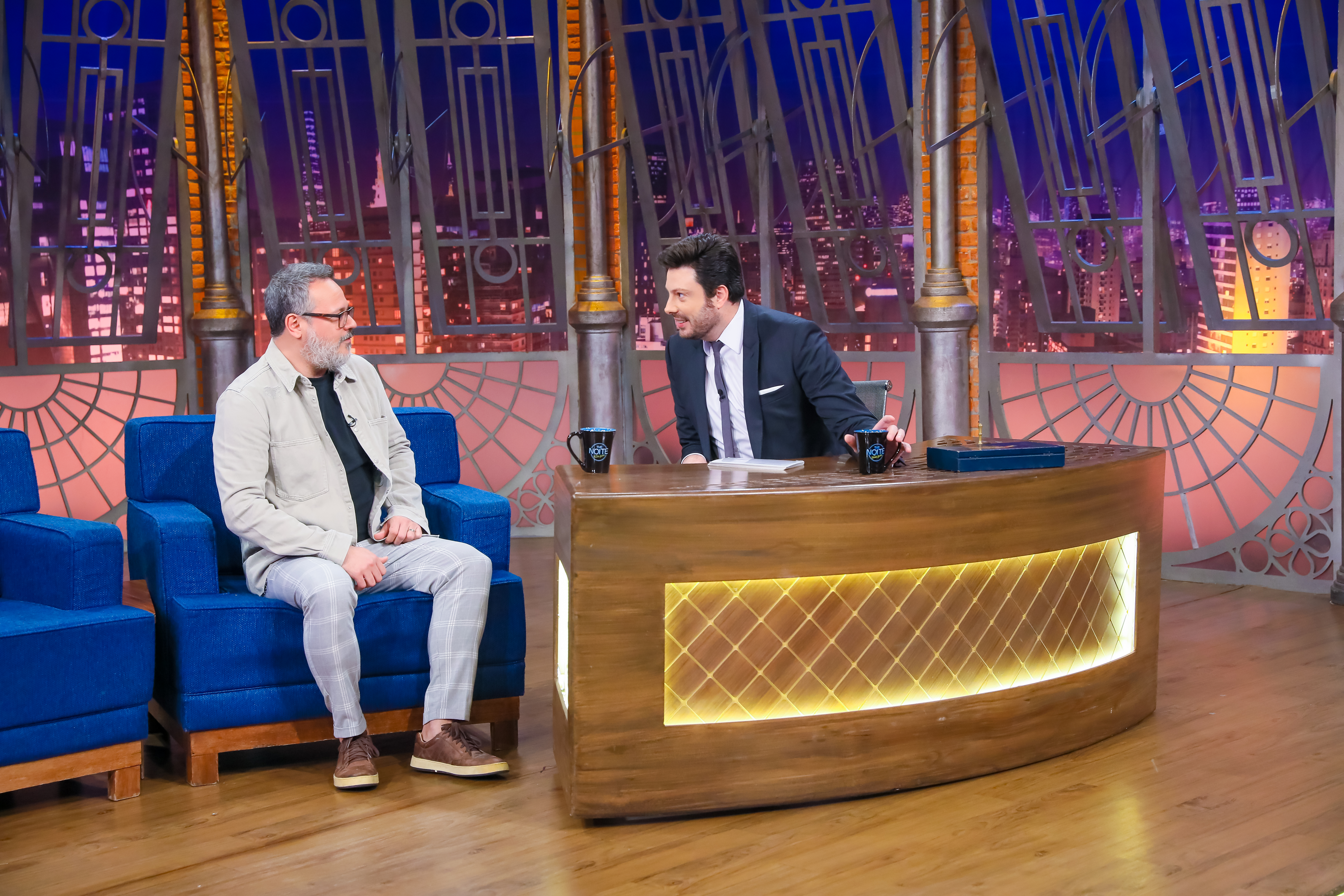 Ator, apresentador e dublador, Danton Mello é o convidado desta quinta-feira (27) no The Noite. Ele conta que seguem trocando seu nome e confundindo-o com o irmão, Selton: “confundem muito a gente. Inclusive hoje, no aeroporto, vindo para cá”. E avalia: “não acho a gente tão parecido assim. E eu falo mais rápido, atropelo as palavras”. Conhecido na dublagem por ter dado voz a diversos personagens de sucesso, declara: “é muito gostoso dublar. Hoje em dia, com a tecnologia, eles colocam sua voz mais para frente, mais para trás. Quando a gente começou, moleque, tinha que ‘syncar’ (sincronizar as falas com o movimento da boca do personagem) certinho e você dublava com muita gente. A bancada, às vezes, tinha 5, 8, 10 pessoas. Era divertido, porque era uma bagunça”.