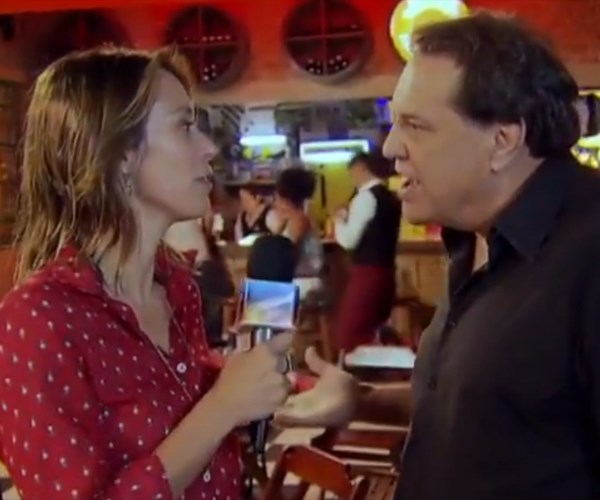 O cenário em questão é o de uma boate de samba. Mas surpreendentemente a repórter não sabia da visita do colega e soltou: “Ah, jura? Não vi“.