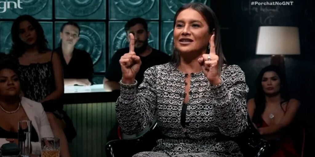 Dira Paes no “Que História é Essa, Porchat?” (Foto: Reprodução/GNT)