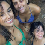 Juliane Araújo, Carolina Helena e Juliana Caldas curtiram o dia livre de trabalho em uma cachoeira do Rio de Janeiro. As três atrizes, que construíram um vínculo de amizade por conta de O Outro Lado do Paraíso, postaram alguns registros do dia na cachoeira em suas redes sociais.