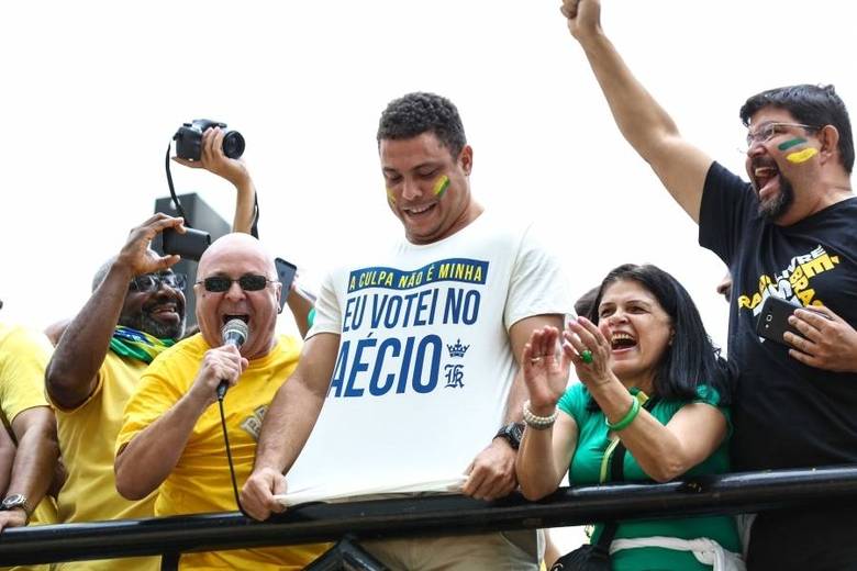 SAO PAULO, SP, 15.03.2015 - PROTESTO CONTRA GOVERNO - SAO PAULO - O ex jogador Ronaldo Nazario e a cantora Wanessa Camargo durante ato que pedem impeachment da presidente, Dilma Rousseff na tarde deste domingo, (15) no vão livre do MASP, na Avenida Paulista, região central de São Paulo. (Foto: William Volcov / Brazil Photo Press).