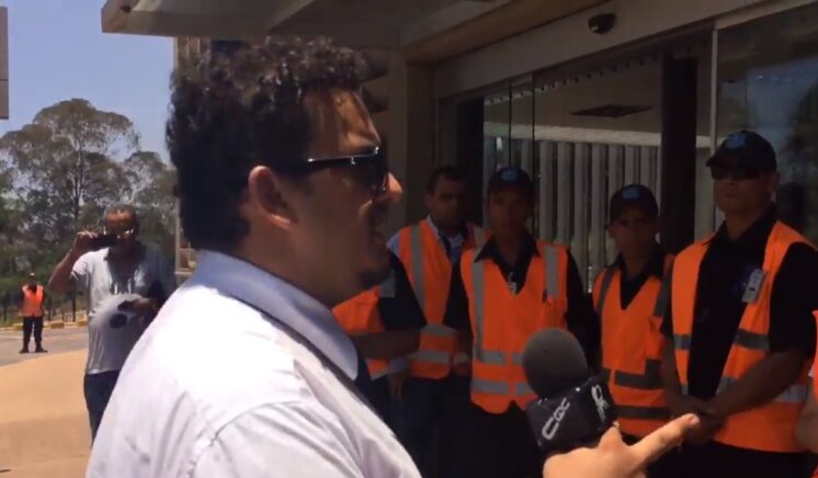 Paul Kiernan, repórter do Wall Strett Jornal, publicou nas redes sociais, um vídeo que flagra um dos momentos em que a equipe do programa é barrada por seguranças. Confira:
