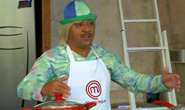 Tiririca estrelou o “Master Jegue”, sátira do reality “MasterChef”, sucesso da Band no ano passado. Com a participação de outros integrantes do elenco, como Guilherme Santana e Mari Gonzalez, o humorista preparou uma “receita”, e no final, fez uma imitação do cantor Roberto Carlos.