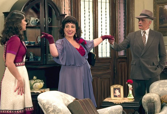 A jovem tenta mandá-la embora, mas, no mesmo momento, Severo abre a porta. “Cheguei cedo para o almoço. Essa senhora, quem é?”, pergunta o comerciante, que é prontamente respondido pela atriz. “Muito gosto, Diva. Eu sou a mãe dela”.