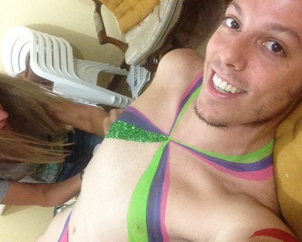 Fabio Porchat fica sem roupa e pinta o corpo de “globeleza” para vinheta