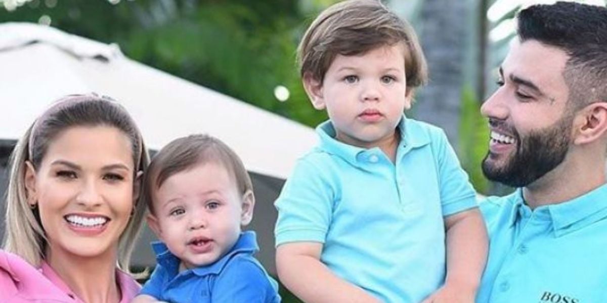 Gusttavo Lima ao lado de Andressa Suita e seus filhos