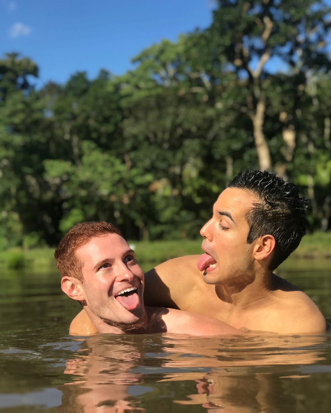 No clique compartilhado por Bruno Gadiol em seu perfil no Instagram, o astro da Globo surge dentro de algo similar a um lago, na companhia de seu amor, Murilo Pinto. Na legenda, o ator escreveu: “Cada um tem a laje que merece”.