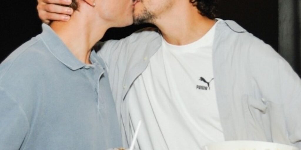 Estamos falando do ator Jesuíta Barbosa e do seu namorado, o bonitão Cicero Ibeiro, e na ocasião, os pombinhos foram clicados já com a pipoca e refrigerante na mão, quando posaram para cliques trocando beijos. Confira: