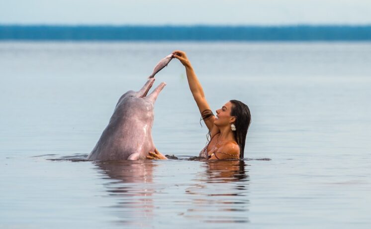 Rita nada com os botos (Foto: Estevam Avellar / TV Globo)