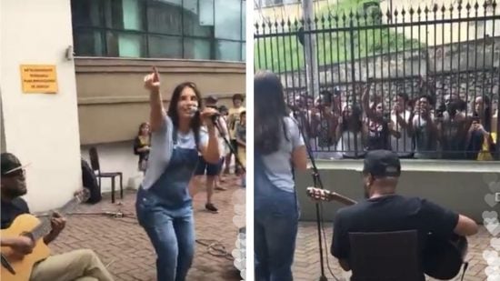 Em frente ao prédio onde mora, em Salvador, na Bahia, a artista aproveitou a presença de diversos fãs que foram lhe homenagear para fazer um show.