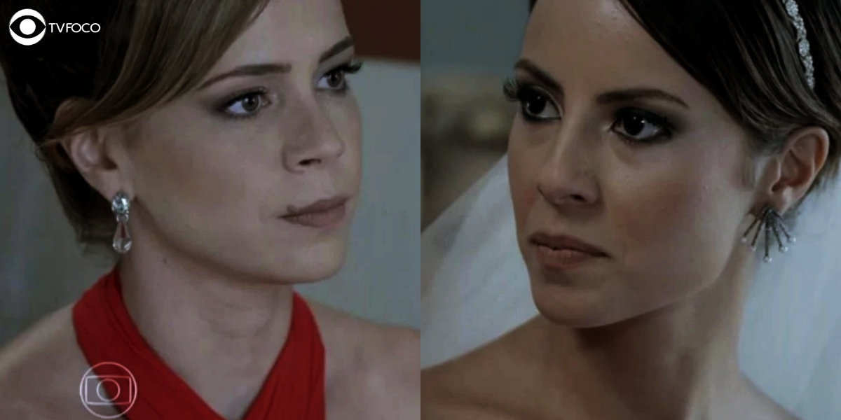 Ofendida, Cristina rebaterá: “Ridícula, invejosa”. Maria Clara então jogará na cara da irmã que ela perdeu Vicente para sempre. As duas vão cair no tapa. Até que se cansam e ao ver o estrago uma da outra, as duas se sentam no sofá da mansão. “Tô parecendo uma pomba gira doida com esse vestido vermelho e esse cabelo“, dirá a cunhada de Tuane (Nanda Costa).