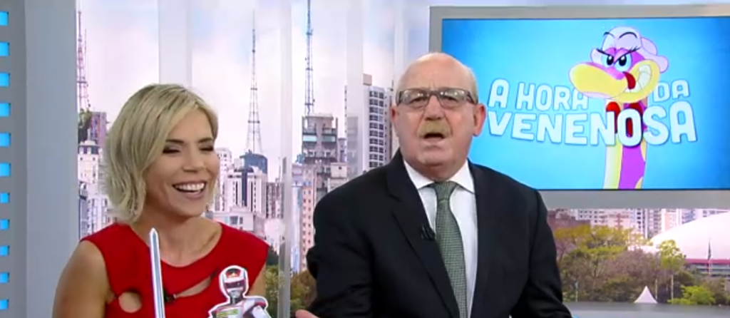 Reinaldo Gottino, Fabíola Reipert e Renato Lombardi no comando de A Hora da Venenosa, principal incômodo da Globo