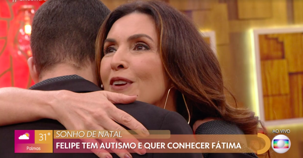 Emocionada, Fátima pareceu radiante ao poder realizar o sonho de Felipe. “Eu fiquei muito feliz porque tem uma carta, tem algumas cartas para mim, mas essa daqui ele pede um presente. ‘Querido Papai Noel, vai ganhar um presente para Fátima Bernardes’. Aí ele segue com outras pessoas que ele quer presentear e no final ele escreve: ‘O meu nome é Felipe, eu sou autista, eu tenho 15 anos e eu quero assistir o programa Encontro com Fátima Bernardes’. A carta é endereçada ao Papai Noel, então é o presente que ele pediu”.