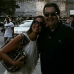 Na rede social, Luciana compartilhou uma imagem na qual aparece com o comunicador em frente a uma enorme igreja durante uma viagem para o exterior.