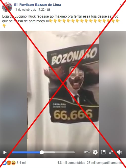 No tal vídeo, a mulher não faz nenhuma menção a Huck, mas muitas pessoas passaram a compartilhar as imagens como se a loja fosse de propriedade do apresentador da Globo. “Loja de Luciano Huck repasse ao máximo pra ferrar essa loja desse safado que se passa de bom moço [sic]”, diz uma das pessoas que compartilhou o post.