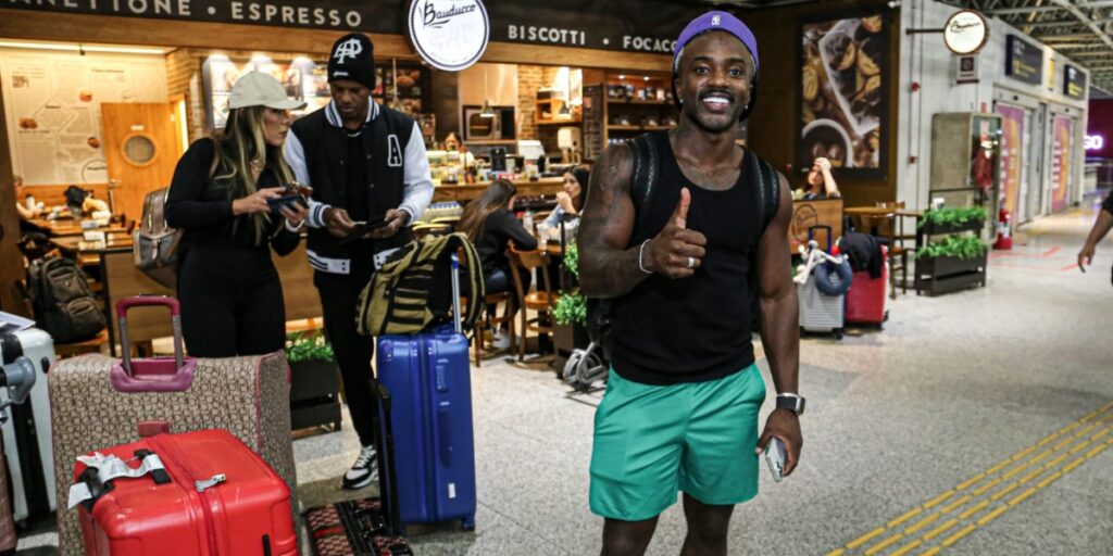 Ontem (30), o influenciador digital Negrete embarcou no aeroporto internacional do Rio de Janeiro, com destino à Curaçao, ao lado dos amigos Fábio Braz, Túlio Maravilha, Neném e Fabrício Carvalho.
