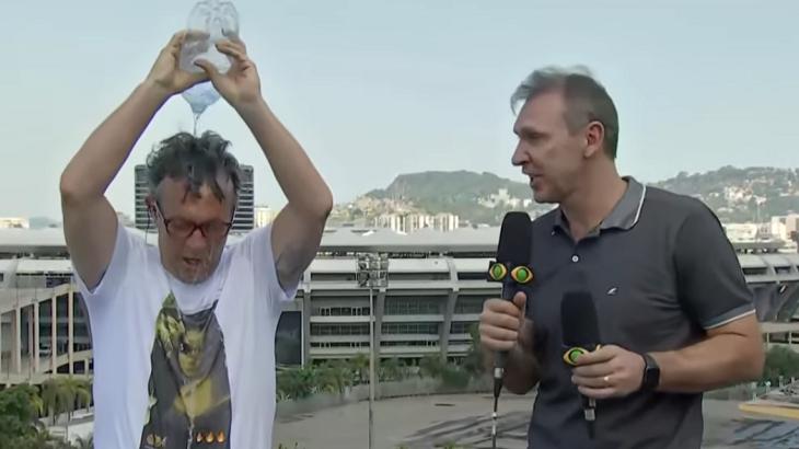 É que ele pegou uma garrafa de água e jogou no corpo, ao lado de Velloso, que acompanha ele no programa. “Tá se refrescando aí? Tá quente, viu, gente? Tá quente e o Neto tá se refrescando. Segunda-feira a gente volta com o campeão da Libertadores”, afirmou o colega.
