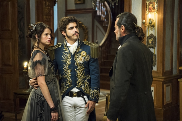 Domitila (Agatha Moreira), Pedro (Caio Castro) e Bonifácio (Felipe Camargo) em ‘Novo Mundo’