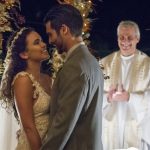 Mercedes não esconde a emoção quando o padre anuncia que os dois estão casados. “Que felicidade ver a minha querida Cleo casada com esse rapaz… Xodó. A Clara mandou fazer esse bolo. Estou tão emocionada. Sempre te vi entrar na igreja de noiva… mas não quis impor teu destino. Agora tá casando aqui, numa igreja que todos dizem que é em ruínas… Mas não. O teto dela é o céu. É um casamento abençoado pelo céu. Sejam felizes. Ou melhor, eu sei. Vão ser felizes”, profetiza Mercedes.