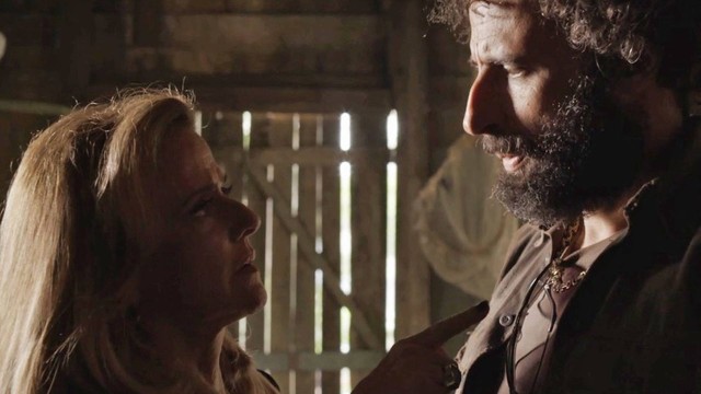 Ela tentará convencer o garimpeiro a terminar o romance, mas, diante da negativa do rapaz, ameaçará até tirar a guarda de Tomaz (Vitor Figueiredo) para a filha largar o sujeito, como informa o jornalista Daniel Castro.