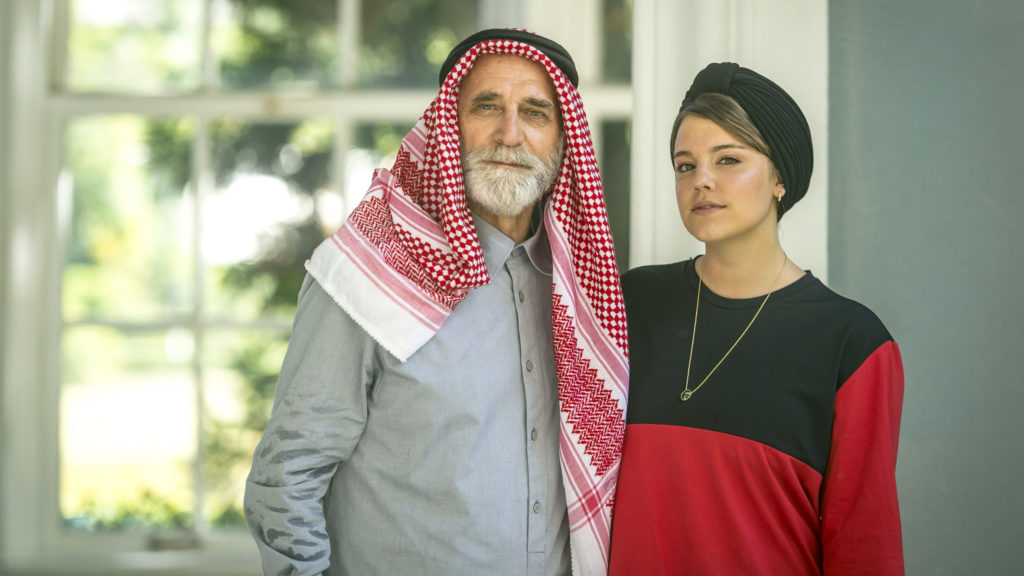 Aziz (Herson Capri) e Dalila (Alice Wegmann) em Órfãos da Terra (Divulgação/ TV Globo)