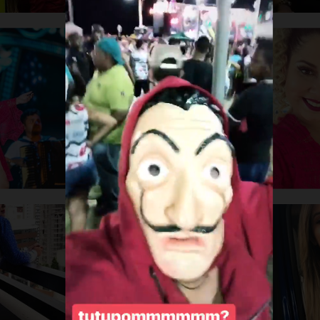 Um famoso artista curtiu o carnaval de Salvador na noite desta sexta-feira, 09 de fevereiro, disfarçado com a máscara do pintor Salvador Daí, que ficou famosa por ser adotada pelos personagens da série La casa de papel.