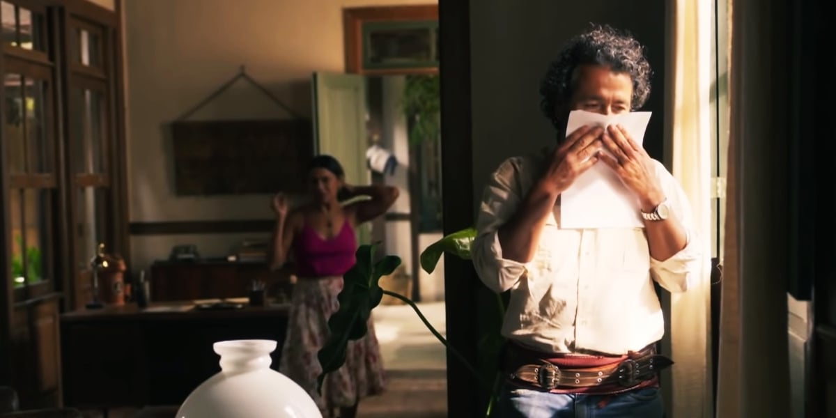 José Leôncio recebe carta de Jove na novela Pantanal (Foto: Reprodução/Globo)