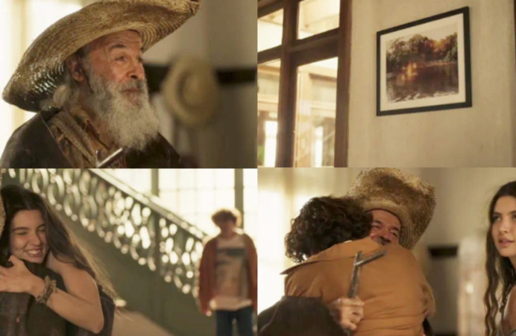 “Ara… Dêxa ele, Joventino!”, responderá a personagem de Alanis Guillen. “Tô ôvino a cantoria… E tô me vêno aqui, no retrato que ocê feiz de mim”, responderá o ancião, apontando para o quadro que Jove tirou uma fotografia do protetor do Pantanal.